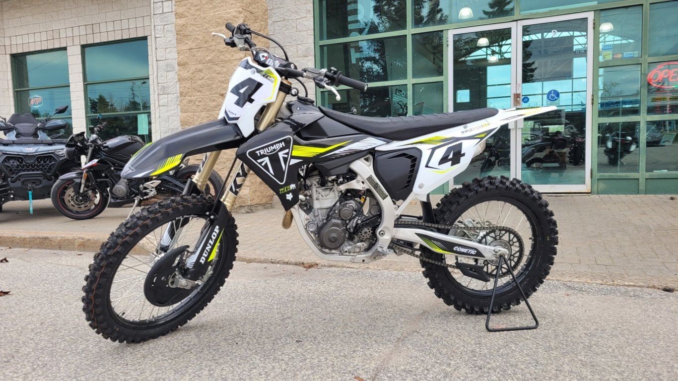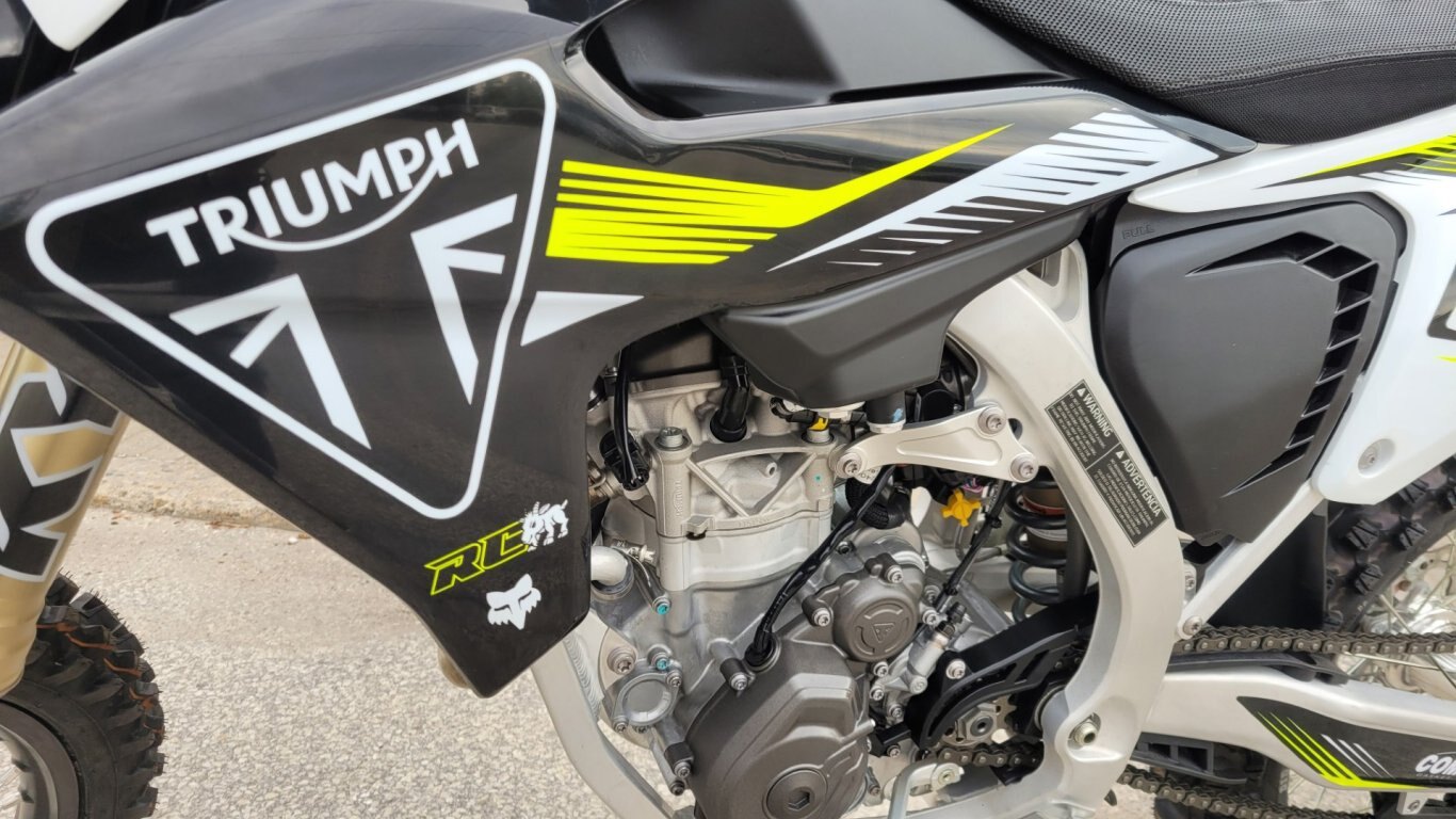 The All-New 2025 Triumph TF 450-RC Edition: introducing an all-new 450cc competition engine, and the strongest power-to-weight ratio in its class. Developed in close collaboration with motocross legend Ricky Carmichael, it features RC’s handpicked specs and signature components, built to deliver relentless performance and ultimate control.