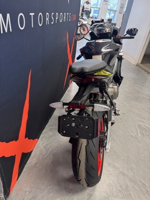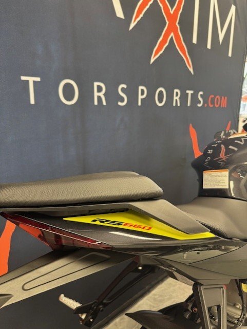 The RS 660’s front lighting set-up features a distinctive triple-element LED headlight and built-in indicators. It includes a twilight sensor for automatic low-beam activation, which improves visibility while riding.