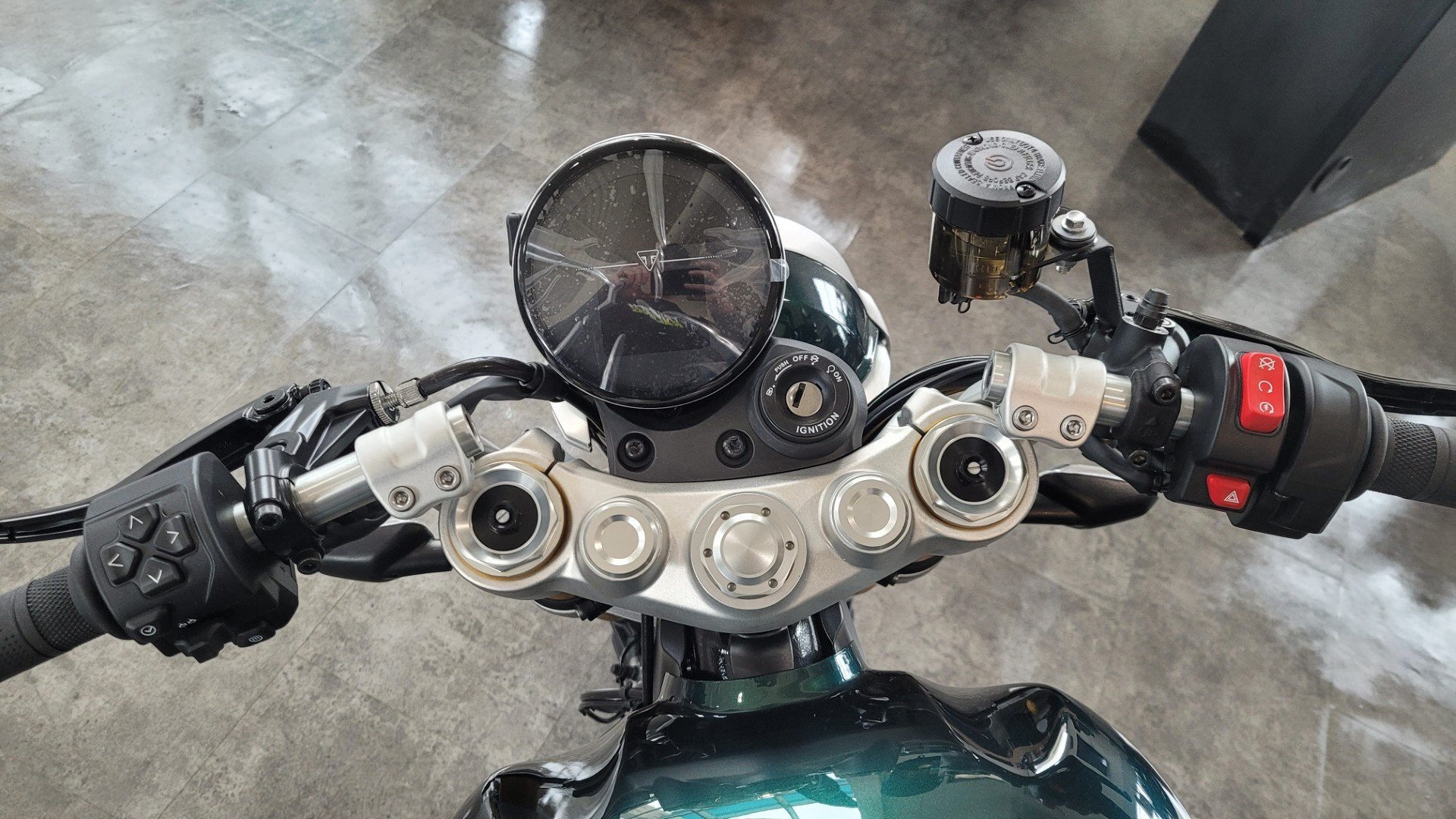 2027 Triumph Speed Twin 1200 Cafe Racer Edition Aluminium silver / Competition greenHandling