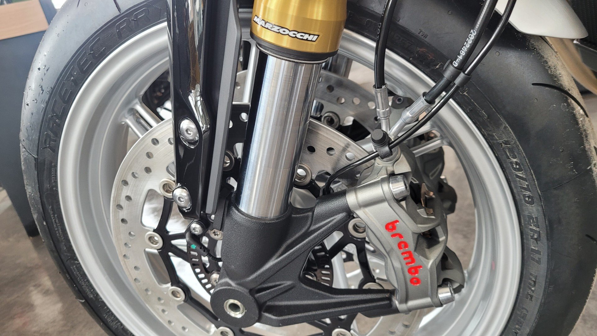 Front Brakes Twin, 320 mm floating discs, Brembo Stylema M4.30 radial calipers, Brembo MCS lever, OCABS